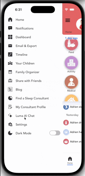 All those feedings, naps, and diaper changes you've been diligently tracking? Luma AI transforms them into beautiful, easy-to-understand weekly summaries. Instead of scrolling through endless logs, you get a clear snapshot of your child's week at a glance.